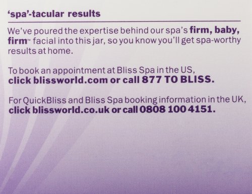 This innovative serum from Bliss helps to boost collagen and elasticity within the skin whilst plumping it from the inside out. Bliss Firm Baby Firm. See 2 member reviews and photos.