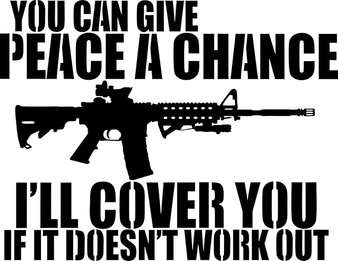 High-quality You Can Give Peace A Chance Ill Cover You If It Doesnt Work Out decals for cars and windows using durable weatherproof vinyl. Our hats speak loudly to the individual who never quits the fight and lives for liberty and freedom. Give Peace a Chance John Lennon Two one two three four Evrybodys talking about Bagism Shagism Dragism Madism Ragism Tagism This-ism that-ism is-m is-m is-m All we are saying is give peace a chance All we are saying is give peace a chance. 50 Cotton 50 Polyester Imported Machine Wash Limited Edition Funny Military Gun Rights Come and take it. At Shield Republic we stand for freedom and liberty in service to God Country our families and all Americans. You Can Give Peace A Chance Decal. All we are saying is give peace a chance Cmon Evrybodys talkin bout. Give Peace A Chance. Give peace a chance.