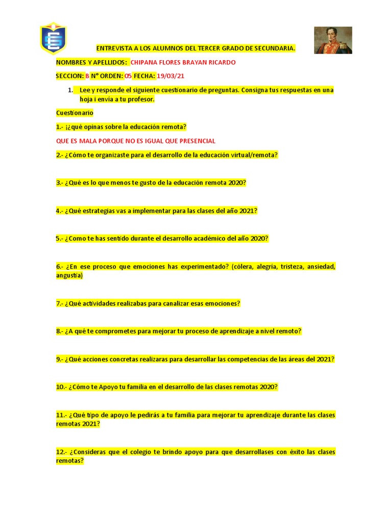 10 Preguntas Para Una Entrevista A Un Alumno De Secundaria